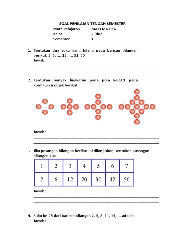Berikut ini jakartastudio.com berikan soal dan jawaban tvri smp 4 juni 2020 secara lengkap yang bisa digunakan oleh orangtua dirumah sebagai bahan pembanding dengan hasil. Diketahui pola bilangan persegi panjang di atas adalah 6, 12. Pada suatu hari domu, beny, dan mangara bersamaan. Tiga suku berikutnya dari barisan 3, 4, 7, 11, 18, … adalah 29, 47, 76. Tuliskan aturan pembentukan pola bilangan 5.