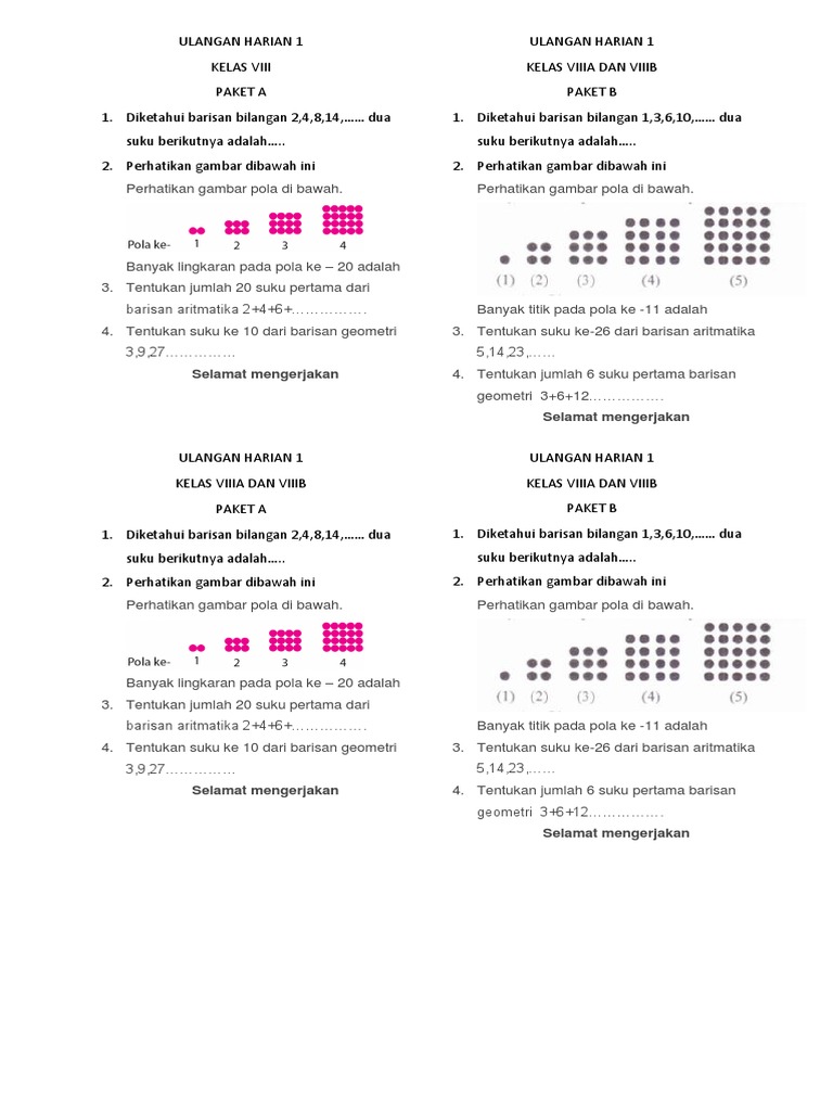 Pada suatu hari domu, beny, dan mangara bersamaan. Tuliskan empat suku berikutnya pada pola a. Dalam tayangan tersebut, terdapat lima pertanyaan. Berikut soal kedua dan jawaban: Pola bilangan untuk siswa smp.